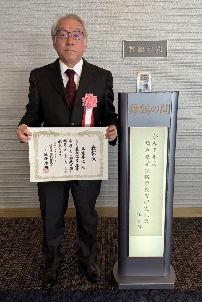 11/21 [令和7年度 福岡県が学校健康教育研究大会]において学校保健功労者として馬渡秀仁院長が表彰されました。